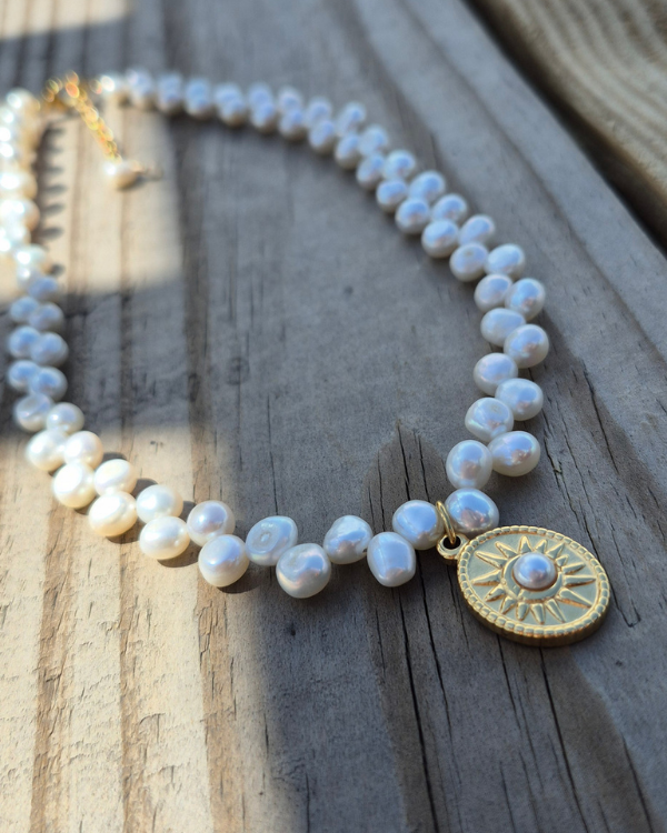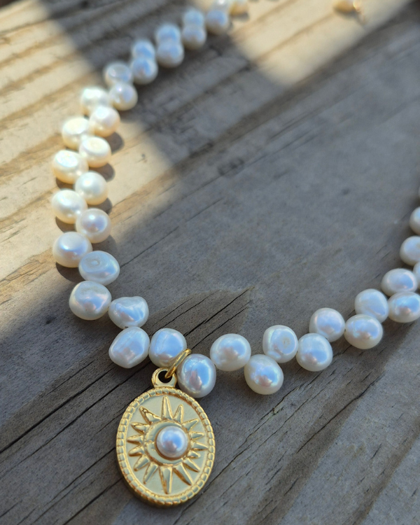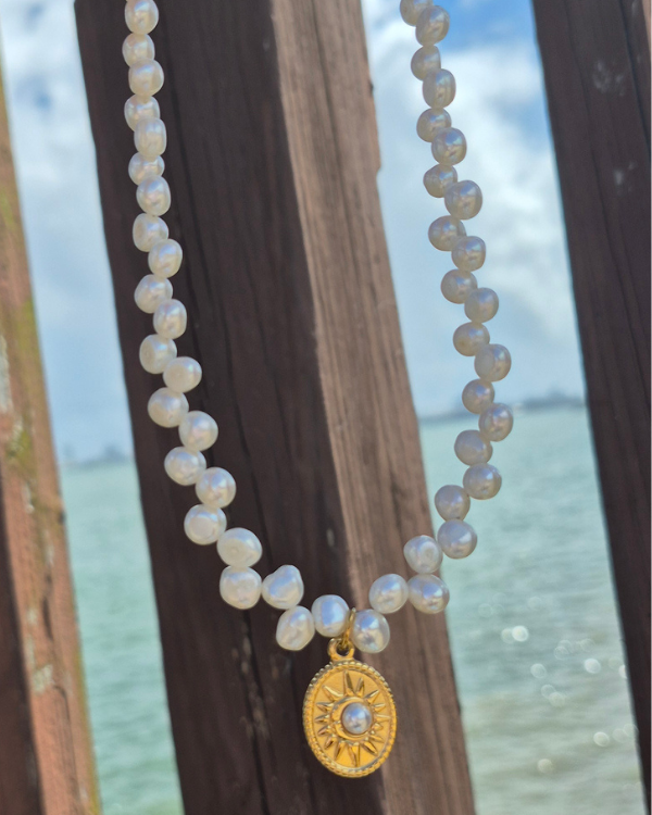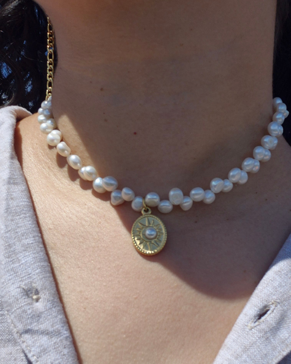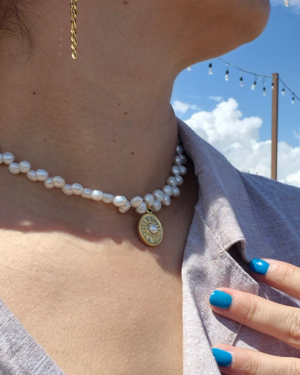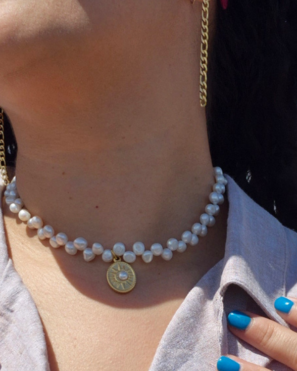 Elara es para ti que reconoces la elegancia en tu vida y que no necesitas hacer ruido para brillar, porque tu presencia lo dice todo. Confeccionado completamente en perlas de agua dulce, perfecto para resaltar tu elegancia.