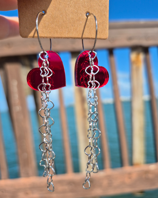 Ritmo es nuestro latido en acción, en movimiento. Es nuestro amor constante, sin prisa y sin pausas. Está confeccionado con aretes en argollas en acero inoxidable, el corazón rojo en acrílico y unas cadenas de corazones en acero inoxidable. Todo creado para darle movimiento y fluidez a tu ritmo único.